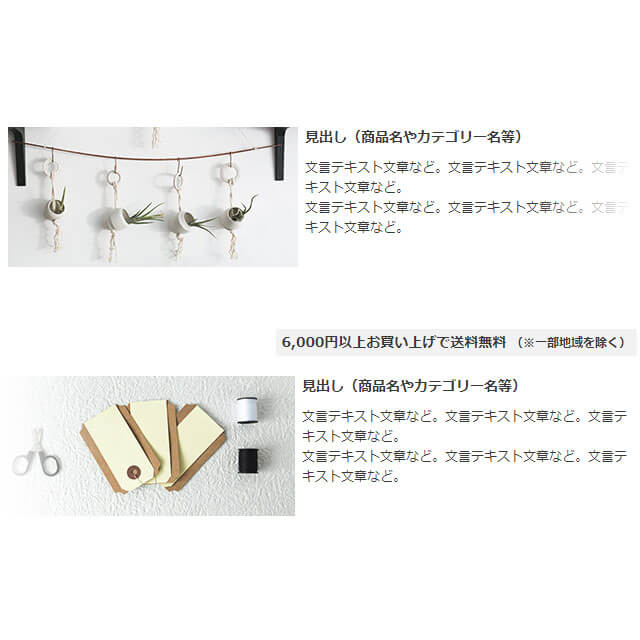 バナー画像をより多く設置し商品の強みをアピールします。 最初からショップに力を入れて運営したい方におすすめです。 |